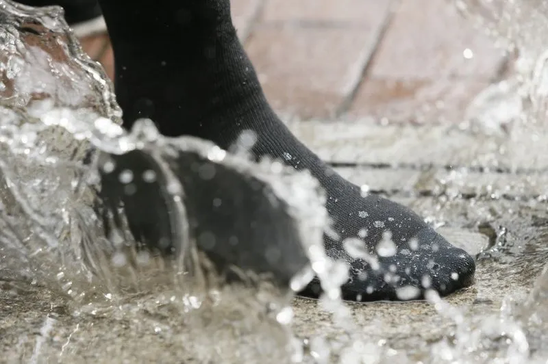 Важно понимать, что обычные хлопковые носки не спасают от влаги. Натуральные материалы быстро впитывают влагу, и это может быть как пот, вырабатываемый телом в течение дня, так и капли воды, которые попадают на изделия извне. Наилучший вариант – трехслойные носки Dexshell с прослойкой в виде мембраны. Она отталкивает воду, не давая влаге, которая пропитала внешний слой, проникнуть во внутренний слой, соприкасающийся с кожей. За счет этого ноги остаются сухими даже в мокрых ботинках.