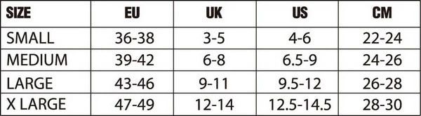 Бренд Dexshell предлагает носки размером от S до XL. Выбирать изделия нужно, следуя размерной таблице, которая указана в каждой карточке товара. Это обеспечивает максимально комфортную и плотную посадку велобахил, позволяя выполнять изделию главную функцию – защиту ног от холодного ветра и влаги. Однако, если в планах надевать модель поверх чего-то более громоздкого, чем обычные кроссовки, то лучше выбрать бахилы на один размер больше.